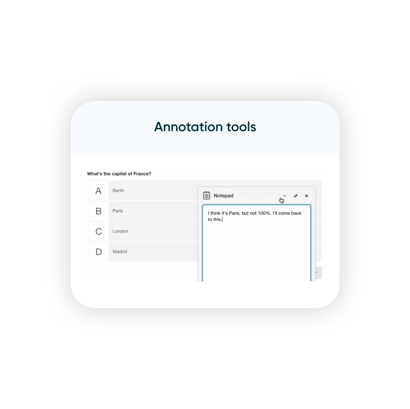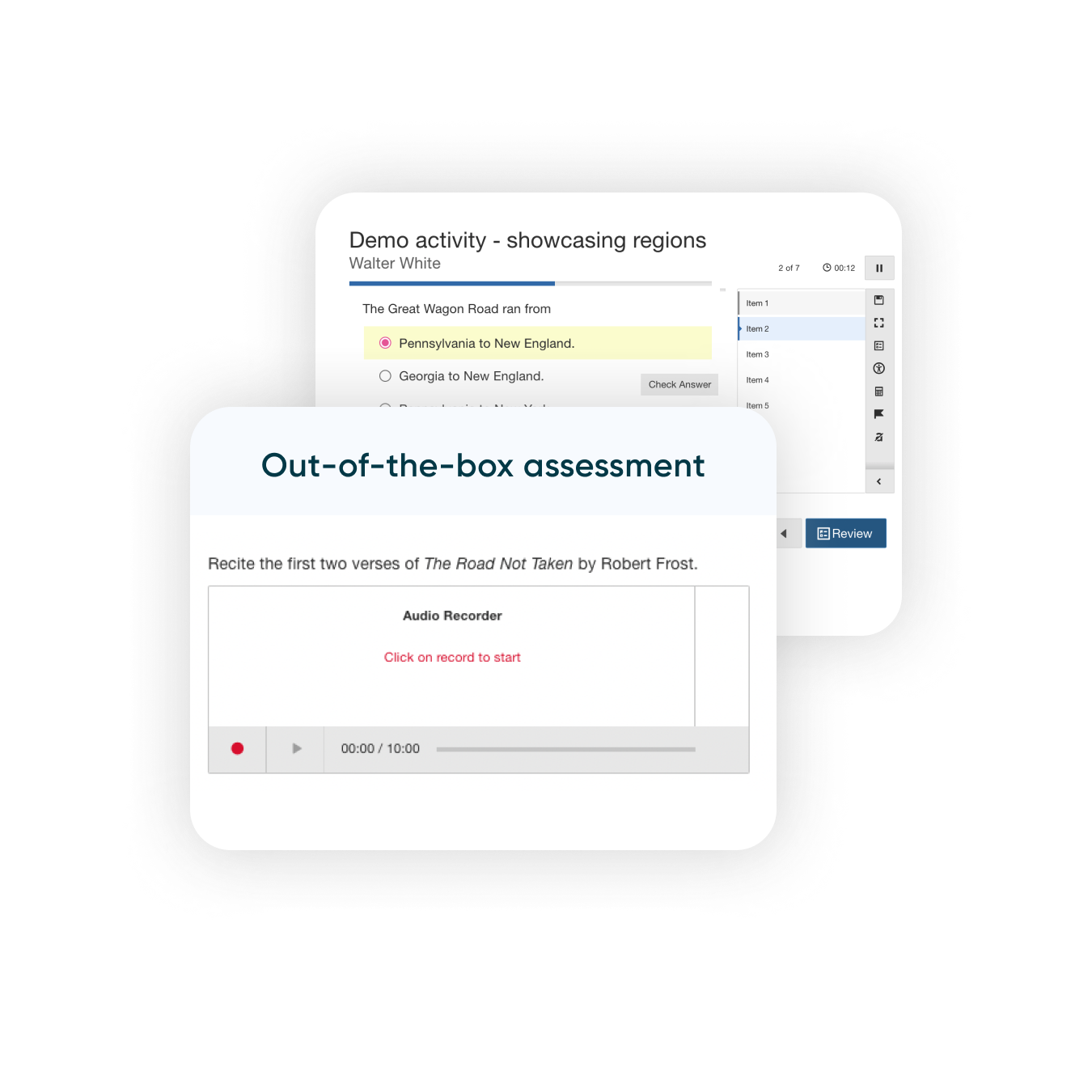 Fast, flexible, and super reliable, our pre-built assessment player gives you ready-made assessment tools to create feature-packed tests with zero fuss.