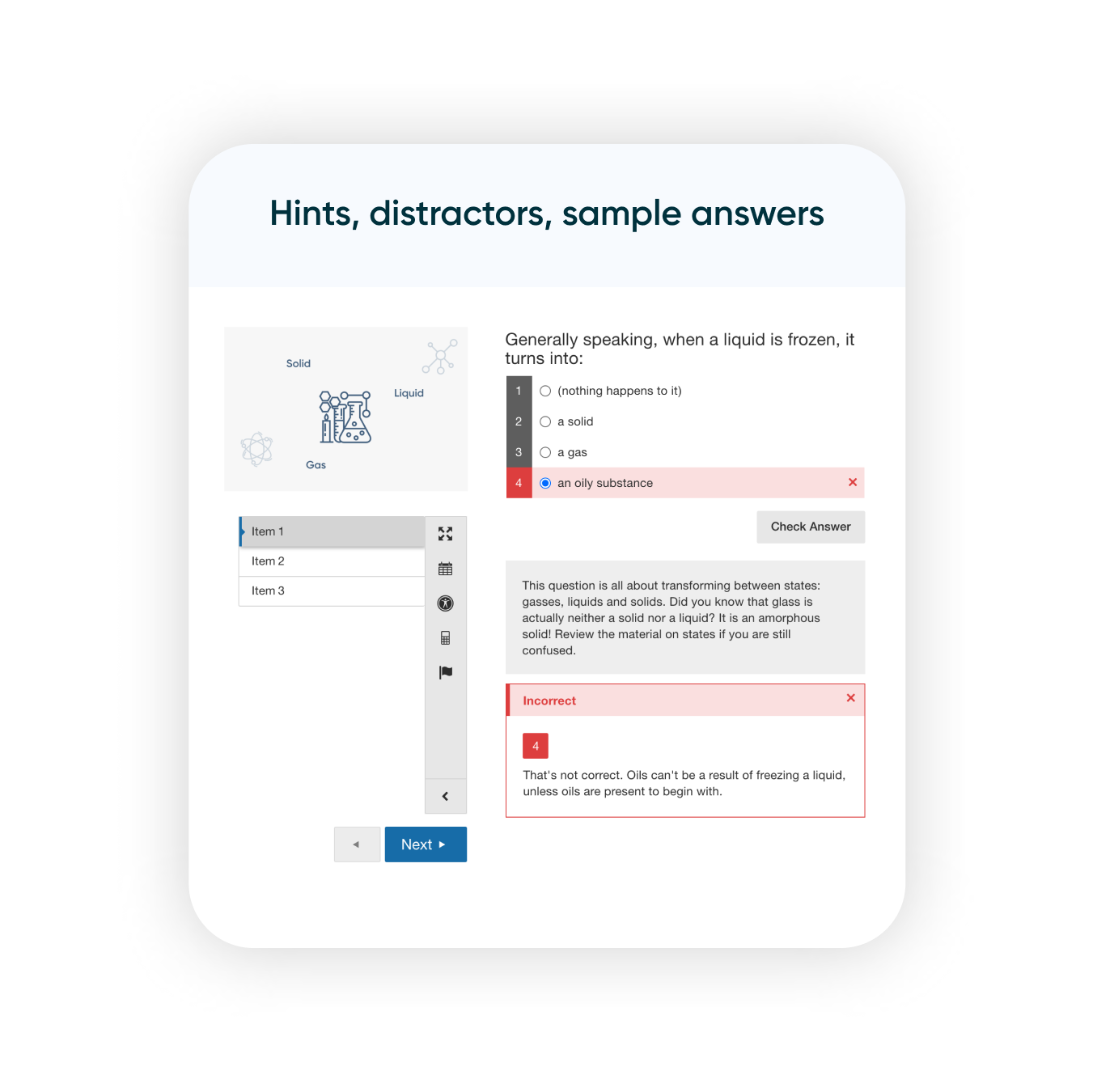 Take full control of test design with a customizable UI that lets you create nuanced learning experiences that better support learners’ needs.