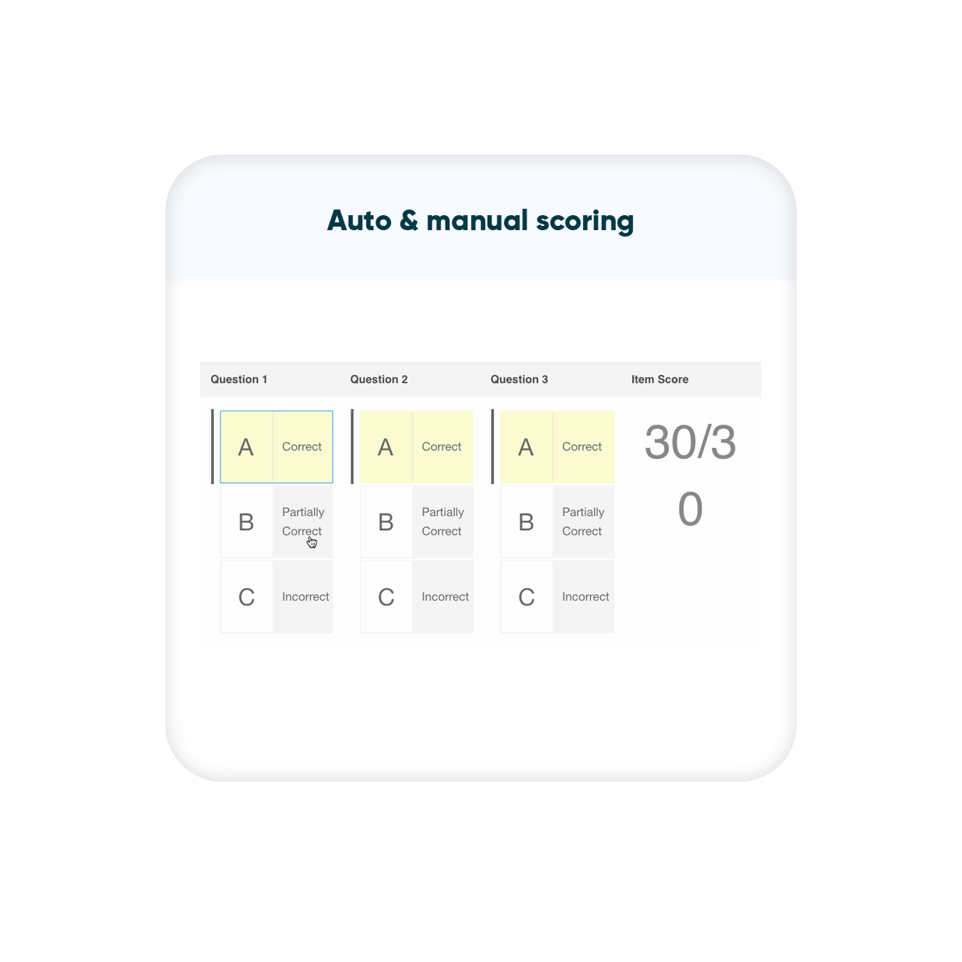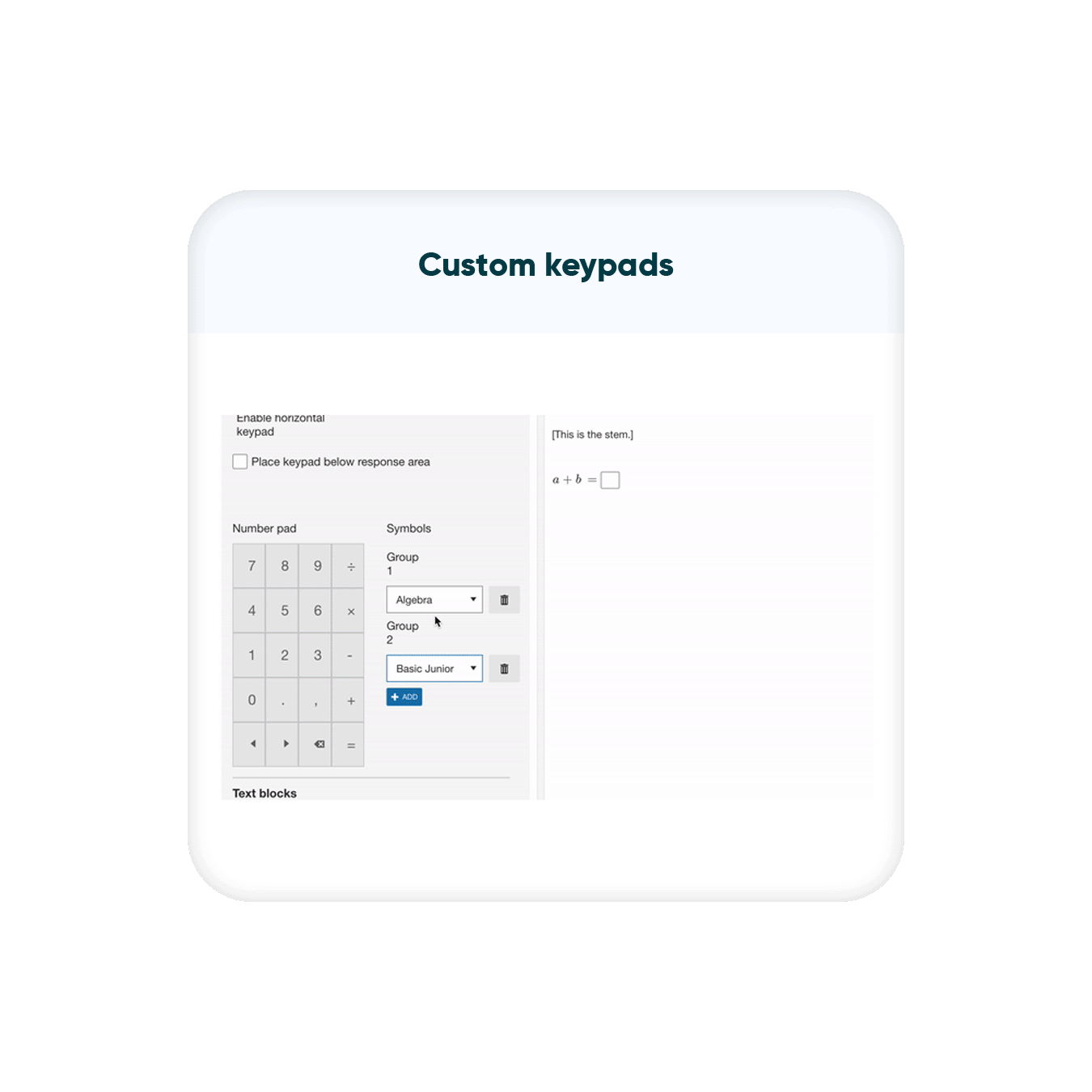 Create complex open-ended math questions with multiple possible answers and have them auto-scored instantly by our custom-built math-scoring engine.