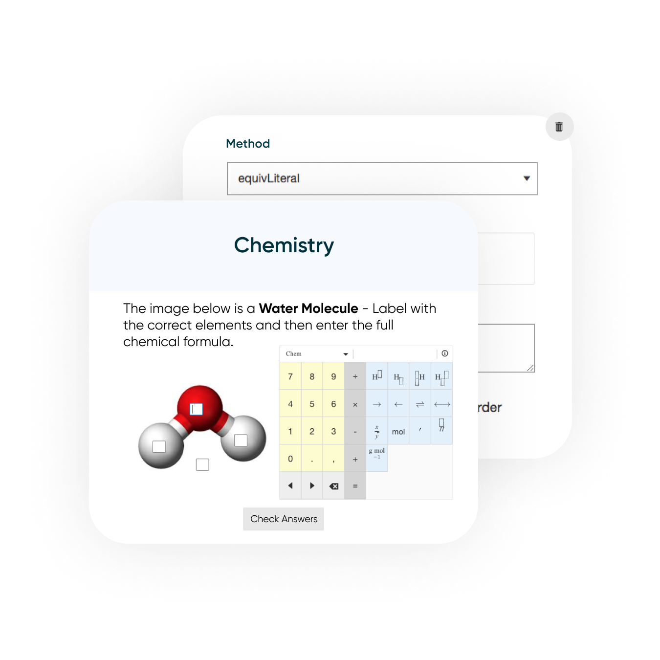 Set and score advanced questions on molecular, empirical, and condensed structural formulas and give learners a flexible on-screen keypad to input responses.