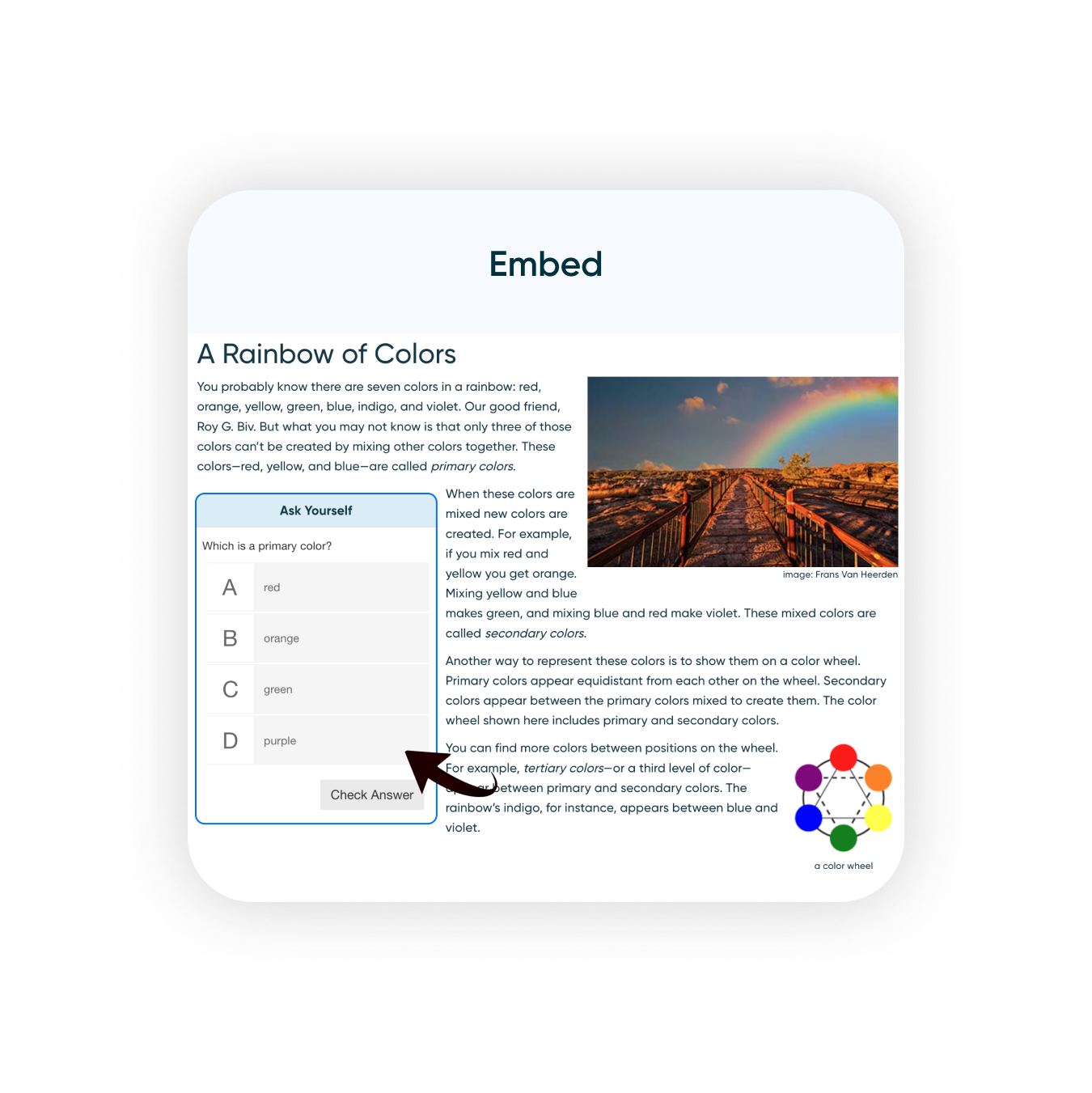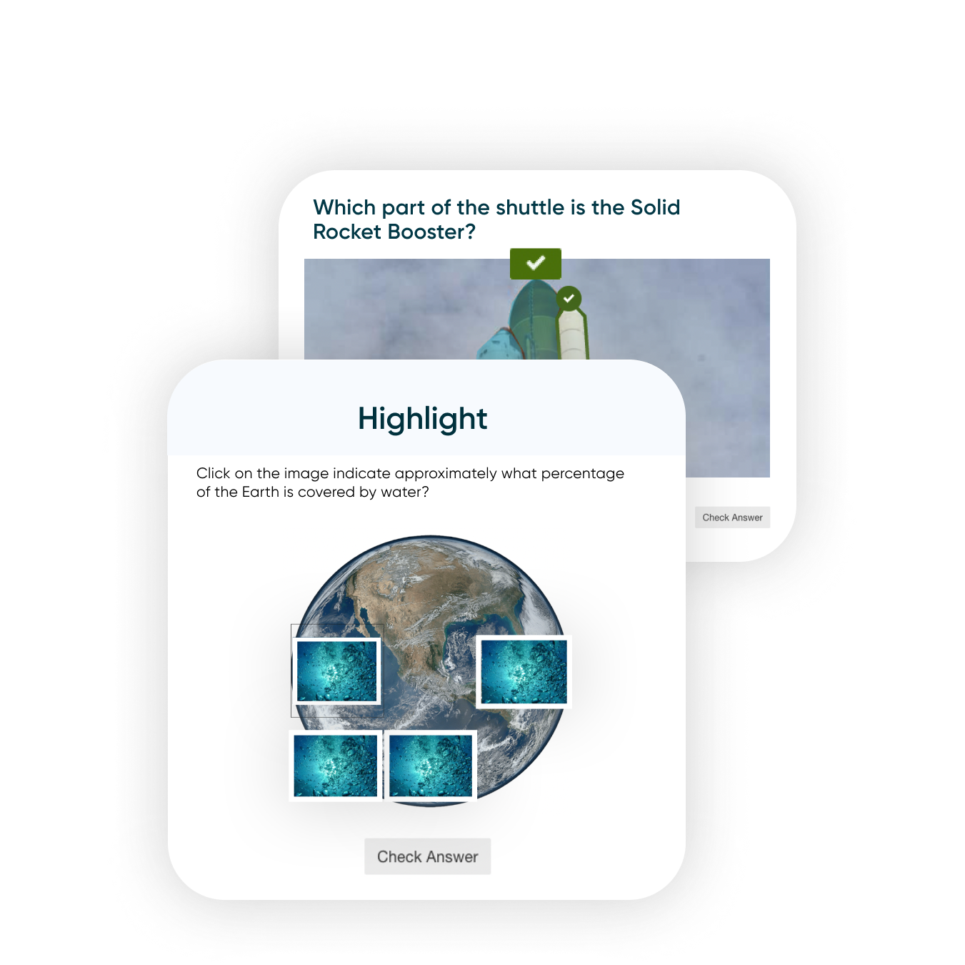 Illustrate your point with an assortment of interactive visual question types such as drawing, shading, highlighting, and hotspotting.