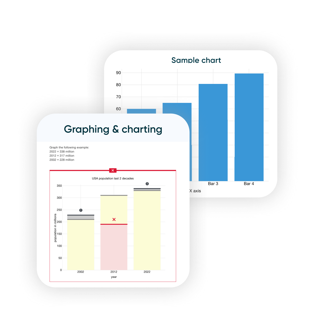 Generate sophisticated interactive charts, graphs, and number lines with ease then accommodate multiple possible answers with smart scoring.